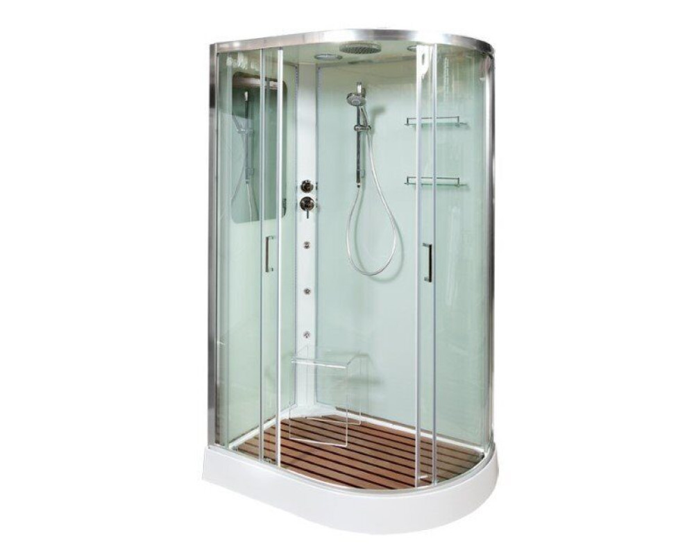 Стильная душевая кабина Deto A102 L с гидромассажем сочетает в себе высокую функциональность, практичность и надежность. Для изготовления применяют безопасное закаленное стекло толщиной 6 мм, надежно фиксируемое алюминиевым профилем. Цвет профиля хром. В комплекте зеркало, сенсорный пульт управления, душевой гарнитур, вентиляция, полочки, зеркало, сифон, полочки, led-подсветка, тропический (верхний) душ, радио.