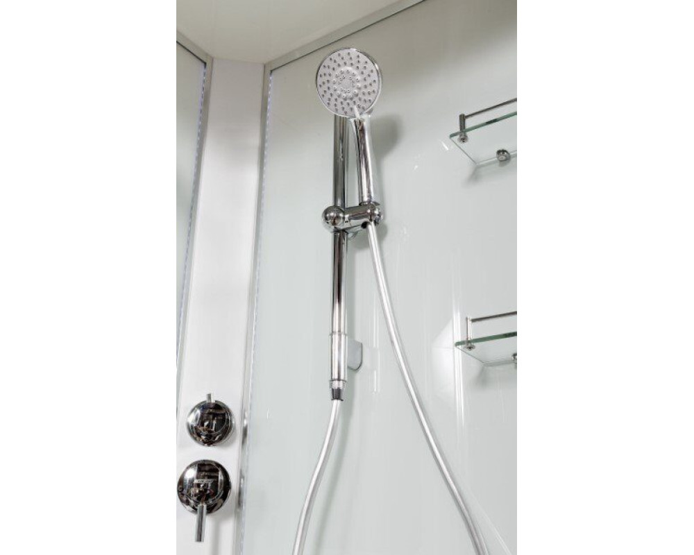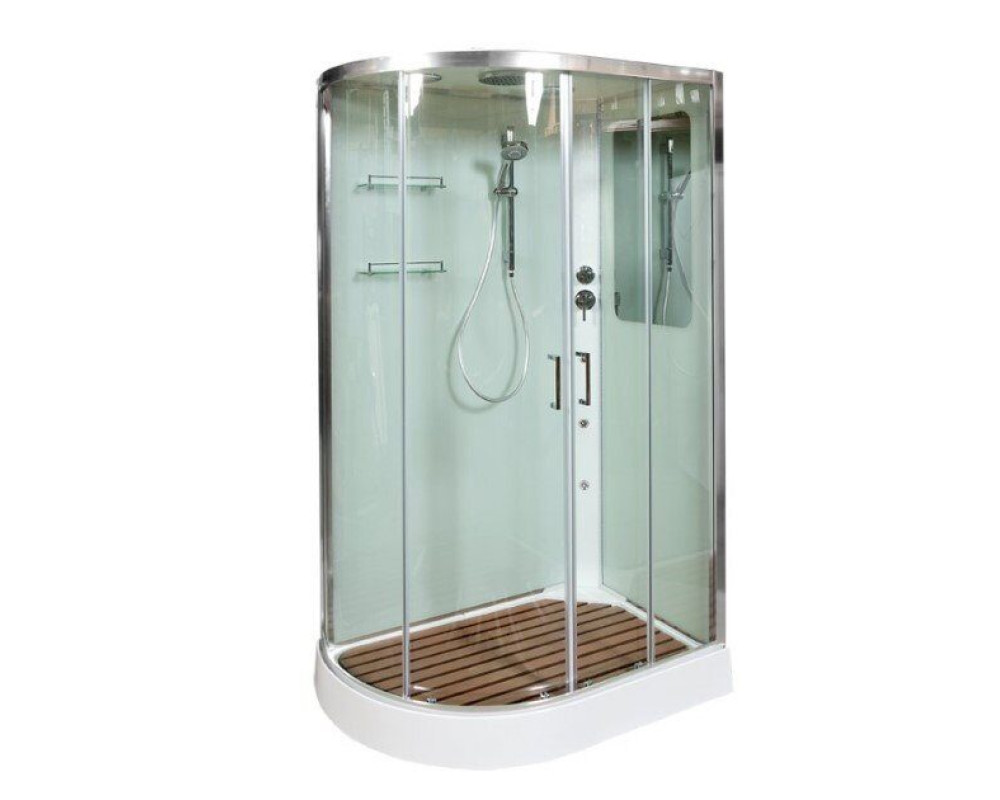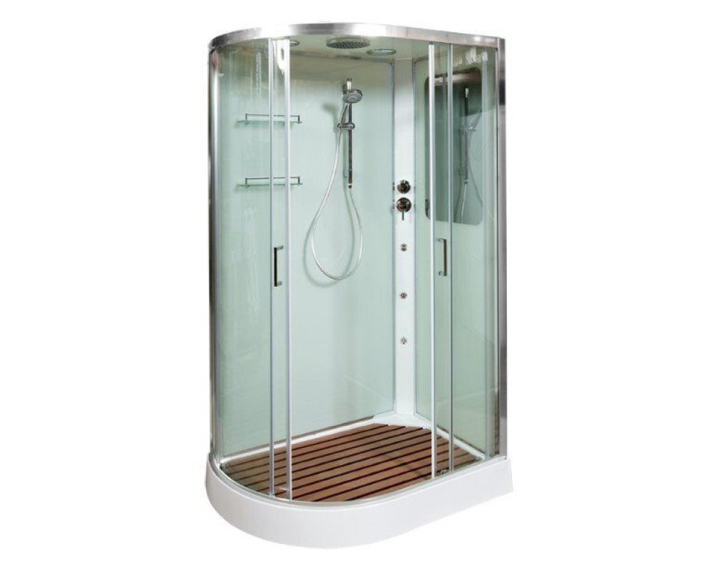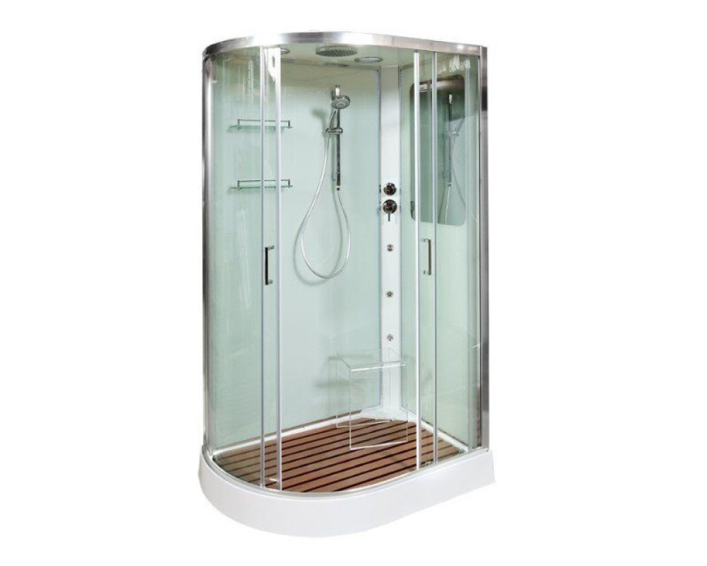 Стильная душевая кабина Deto A102 R с гидромассажем сочетает в себе высокую функциональность, практичность и надежность. Для изготовления применяют безопасное закаленное стекло толщиной 6 мм, надежно фиксируемое алюминиевым профилем. Цвет профиля хром. В комплекте зеркало, сенсорный пульт управления, душевой гарнитур, вентиляция, полочки, зеркало, сифон, полочки, led-подсветка, тропический (верхний) душ, радио.