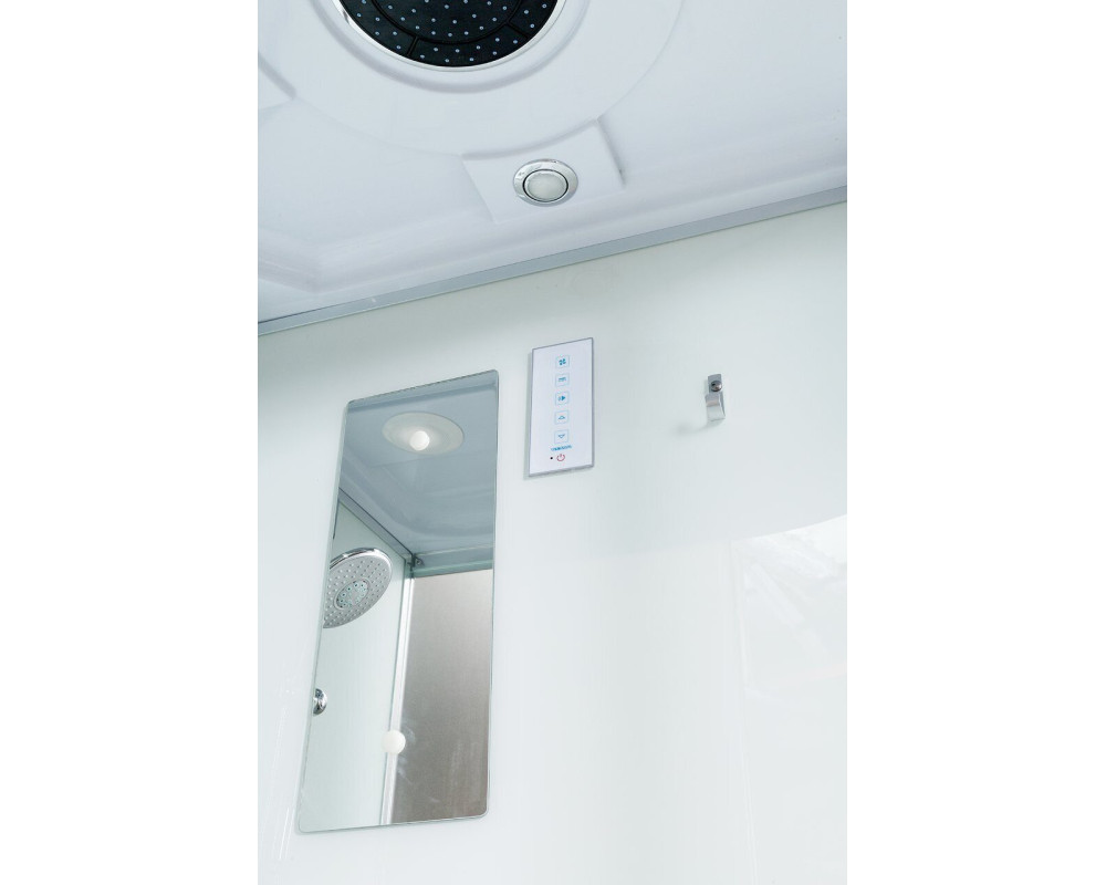 Стильная душевая кабина Deto D102S L с электрикой сочетает в себе высокую функциональность, практичность и надежность. Для изготовления применяют безопасное закаленное стекло толщиной 4 мм, надежно фиксируемое алюминиевым профилем. Цвет профиля хром. В комплекте сифон, полочка, зеркало, сенсорный пульт управления, смеситель, переключатель режимов, душевой гарнитур, тропический (верхний) душ, вентиляция, радио.