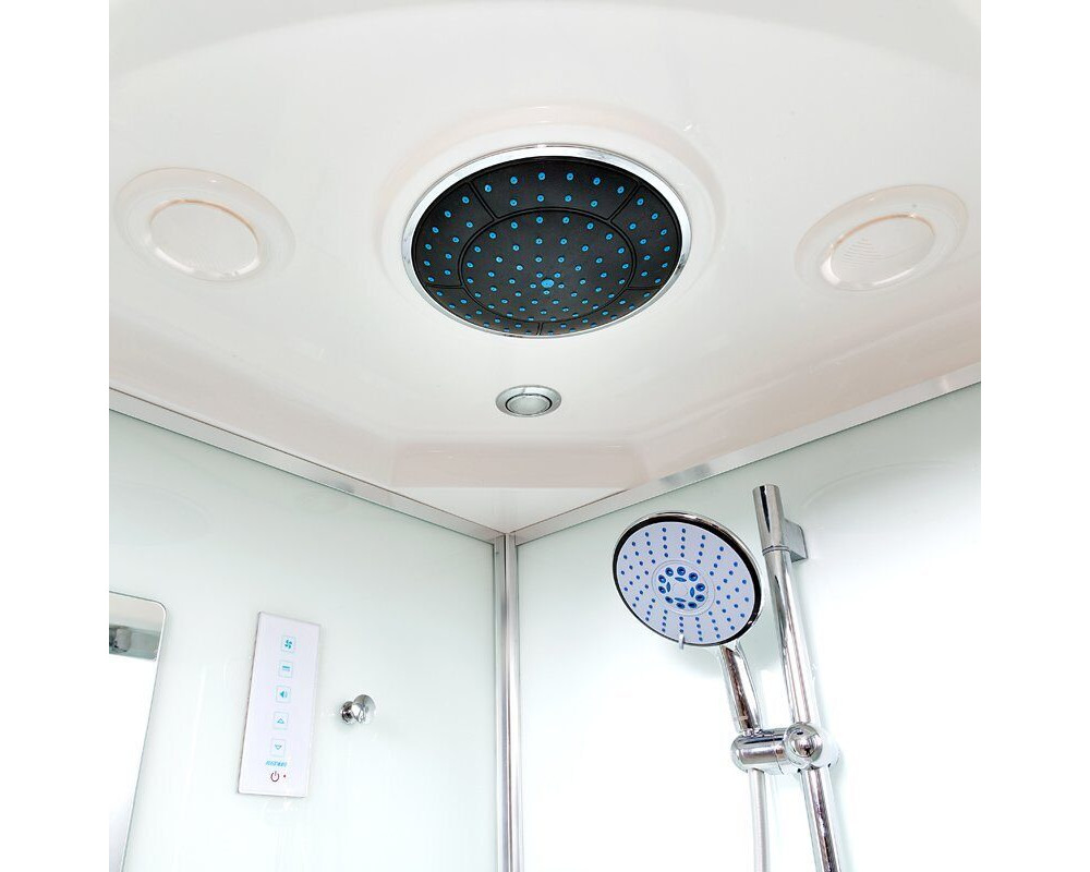 Стильная душевая кабина Deto D90S с электрикой сочетает в себе высокую функциональность, практичность и надежность. Для изготовления применяют безопасное закаленное стекло толщиной 4 мм, надежно фиксируемое алюминиевым профилем. Цвет профиля хром. В комплекте встроенное сидение, сифон, полочка, зеркало, сенсорный пульт управления, смеситель, переключатель режимов, передний съемный экран, душевой гарнитур, тропический (верхний) душ, вентиляция, радио.