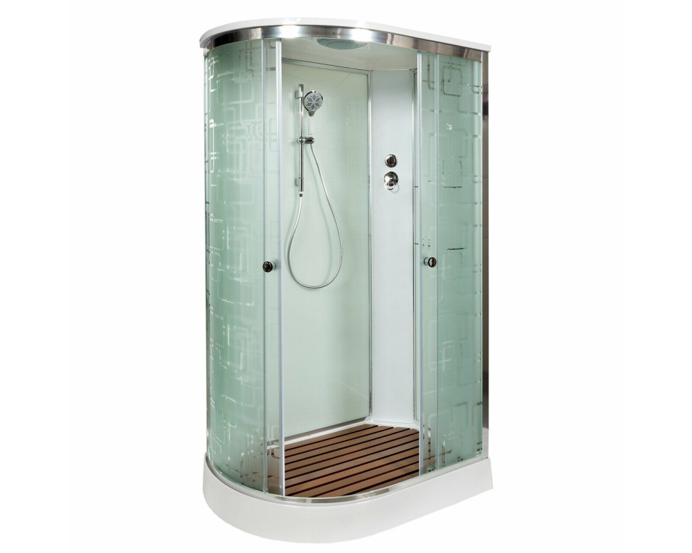 Стильная душевая кабина Deto EM 1512 R сочетает в себе высокую функциональность, практичность и надежность. Для изготовления применяют безопасное закаленное стекло толщиной 5 мм, надежно фиксируемое алюминиевым профилем. Цвет профиля хром. В комплекте зеркало, переключатель режимов, смеситель, тропический (верхний) душ, полочки, тропический (верхний) душ.