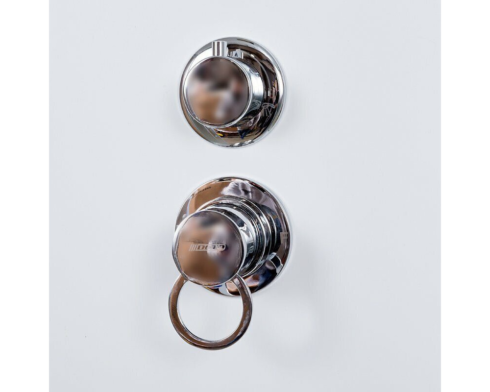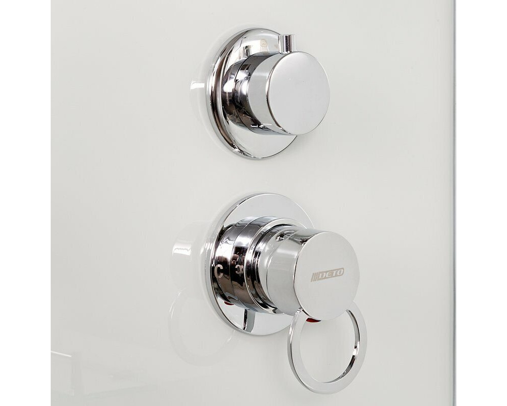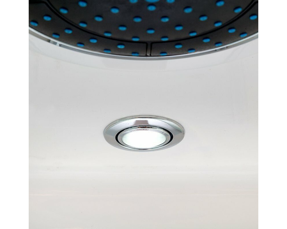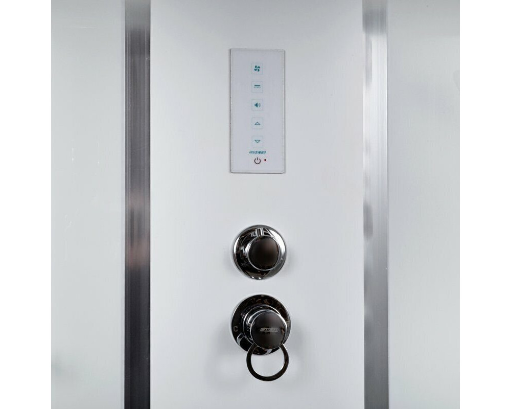 Стильная душевая кабина Deto EM 1590 с электрикой сочетает в себе высокую функциональность, практичность и надежность. Для изготовления применяют безопасное закаленное стекло толщиной 5 мм, надежно фиксируемое алюминиевым профилем. Цвет профиля хром. В комплекте зеркало, сенсорный пульт управления, душевой гарнитур, смеситель, тропический (верхний) душ, деревянная вставка в поддон, переключатель режимов, вентиляция, полочки, тропический (верхний) душ, радио.