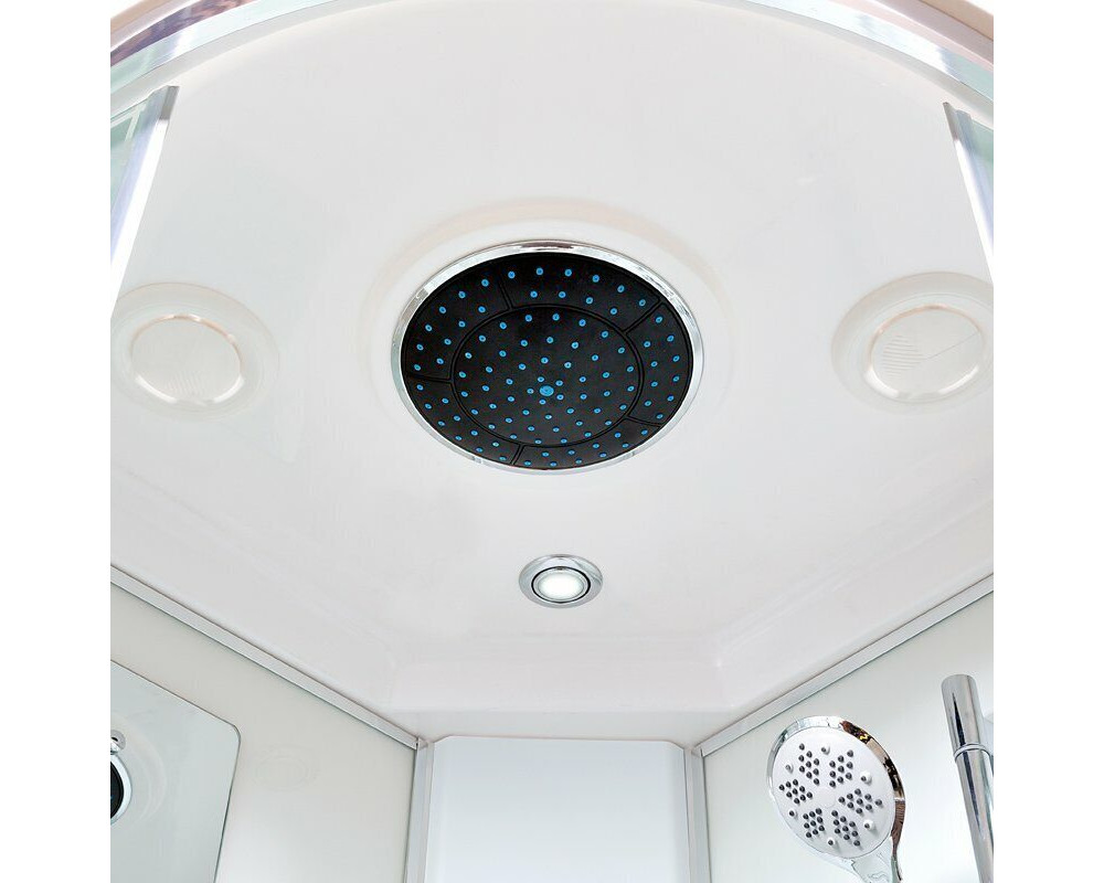 Стильная душевая кабина Deto EM 4590 с электрикой сочетает в себе высокую функциональность, практичность и надежность. Для изготовления применяют безопасное закаленное стекло толщиной 5 мм, надежно фиксируемое алюминиевым профилем. Цвет профиля хром. В комплекте зеркало, сенсорный пульт управления, донный клапан (клик-клак), смеситель, тропический (верхний) душ, переключатель режимов, вентиляция, полочки, гидромассажные форсунки, тропический (верхний) душ, радио.