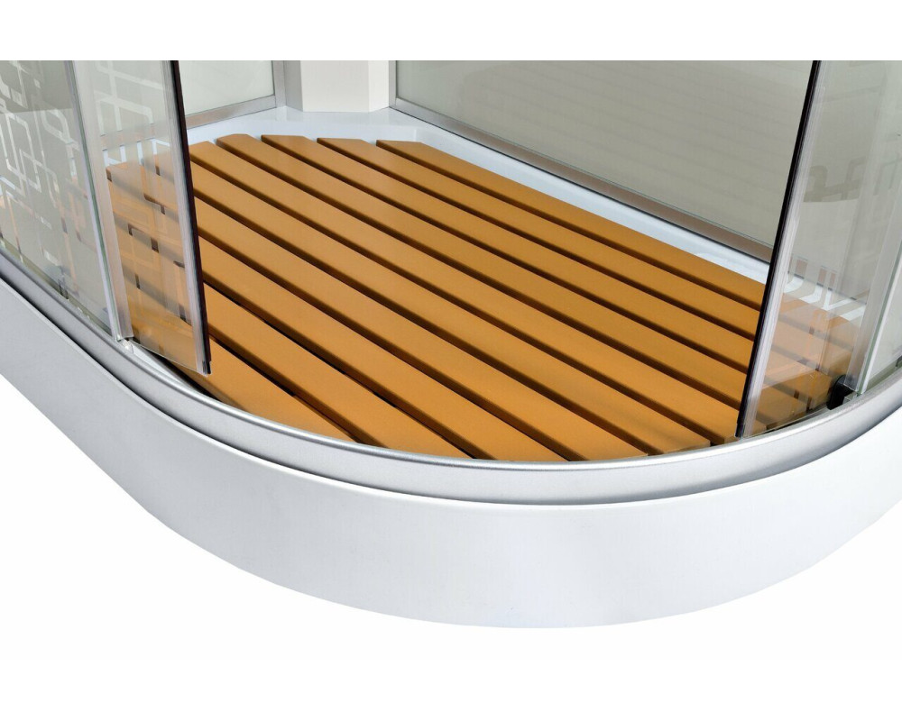 Стильная душевая кабина Deto EM1511 N L LED сочетает в себе высокую функциональность, практичность и надежность. Для изготовления применяют безопасное закаленное стекло толщиной 5 мм, надежно фиксируемое алюминиевым профилем. Цвет профиля хром. В комплекте зеркало, душевой гарнитур, переключатель режимов, смеситель, деревянная вставка в поддон, полочки, тропический (верхний) душ.
