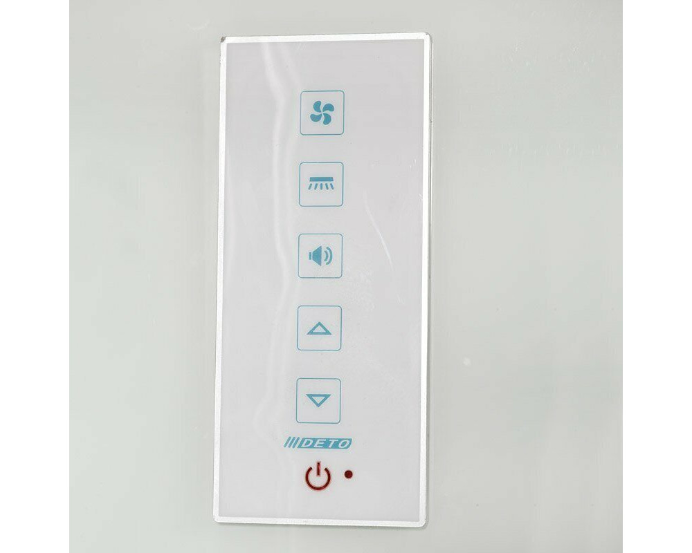 Стильная душевая кабина Deto EM2710 с электрикой сочетает в себе высокую функциональность, практичность и надежность. Для изготовления применяют безопасное закаленное стекло толщиной 5 мм, надежно фиксируемое алюминиевым профилем. Цвет профиля хром. В комплекте сифон, зеркало, сенсорный пульт управления, донный клапан (клик-клак), душевой гарнитур, полочки, смеситель, переключатель режимов, тропический (верхний) душ, вентиляция, радио.