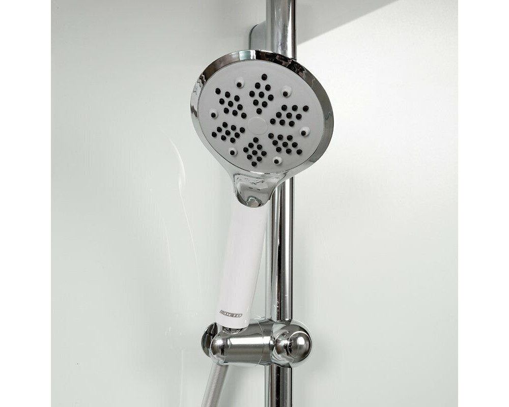 Стильная душевая кабина Deto EM4510 N LED с гидромассажем сочетает в себе высокую функциональность, практичность и надежность. Для изготовления применяют безопасное закаленное стекло толщиной 5 мм, надежно фиксируемое алюминиевым профилем. Цвет профиля хром. В комплекте зеркало, душевой гарнитур, деревянная вставка в поддон, полочки, тропический (верхний) душ.