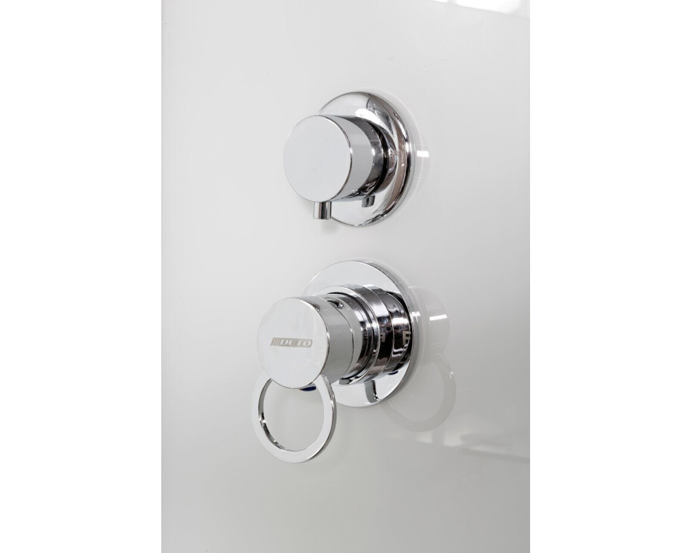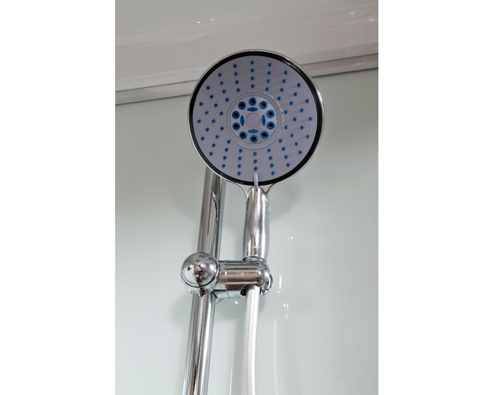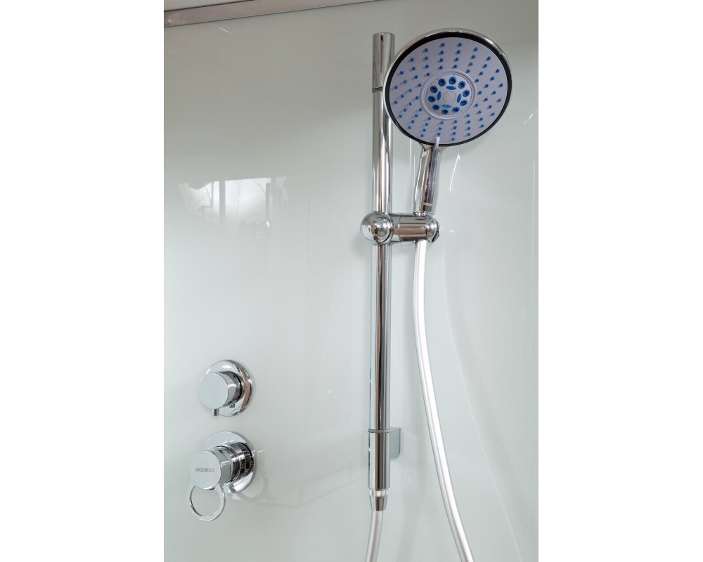 Стильная душевая кабина Deto K402S сочетает в себе высокую функциональность, практичность и надежность. Для изготовления применяют безопасное закаленное стекло толщиной 5 мм, надежно фиксируемое алюминиевым профилем. Цвет профиля хром. В комплекте зеркало, душевой гарнитур, полочка, тропический (верхний) душ.