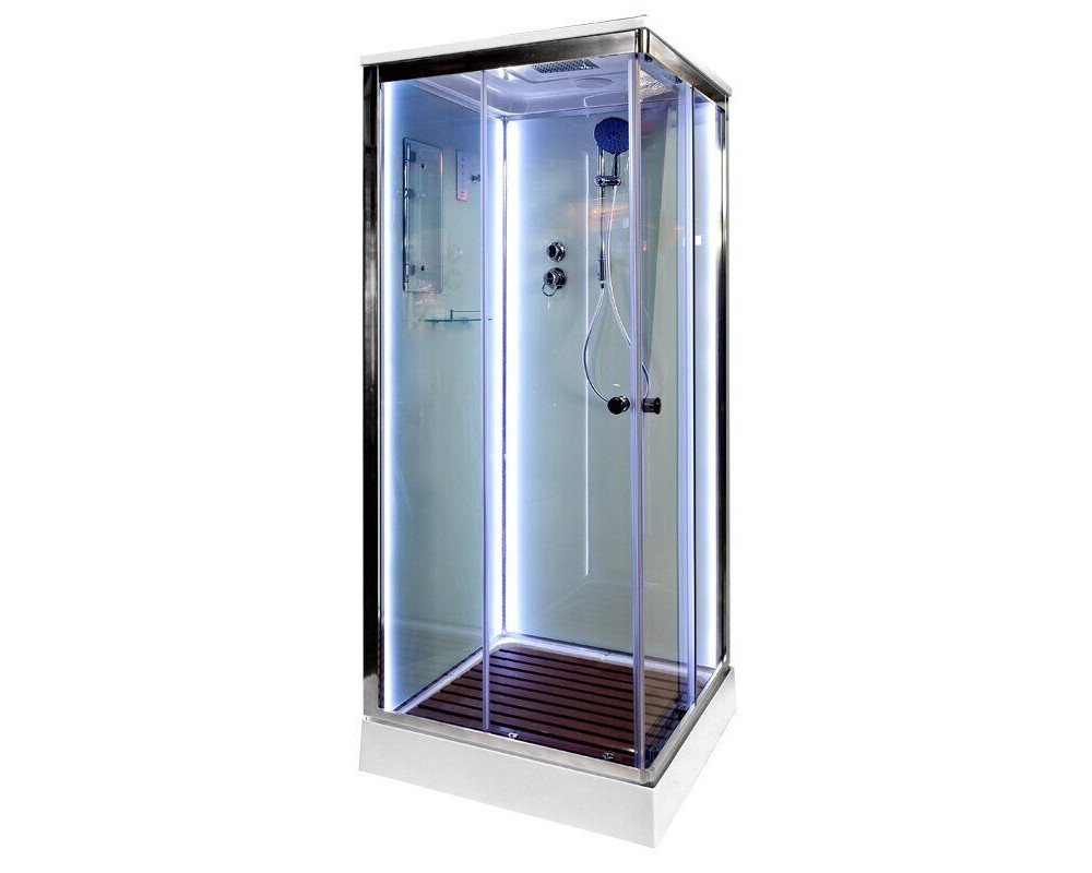 Стильная душевая кабина Deto K409SLED сочетает в себе высокую функциональность, практичность и надежность. Для изготовления применяют безопасное закаленное стекло толщиной 5 мм, надежно фиксируемое алюминиевым профилем. Цвет профиля хром. В комплекте зеркало, душевой гарнитур, полочка, тропический (верхний) душ.