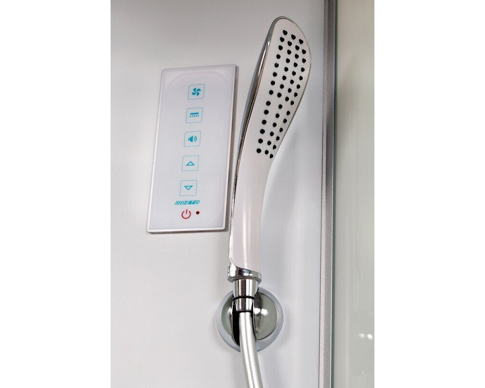 Стильная душевая кабина Deto L 710 с гм. и эл. сочетает в себе высокую функциональность, практичность и надежность. Для изготовления применяют безопасное закаленное стекло толщиной 5 мм, надежно фиксируемое алюминиевым профилем. Цвет профиля хром. В комплекте душевой гарнитур, сифон, тропический (верхний) душ, гидромассажные форсунки, радио.