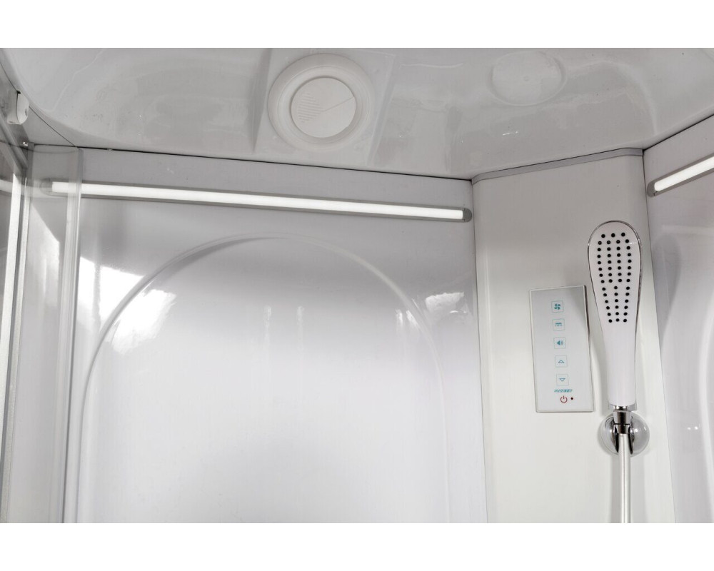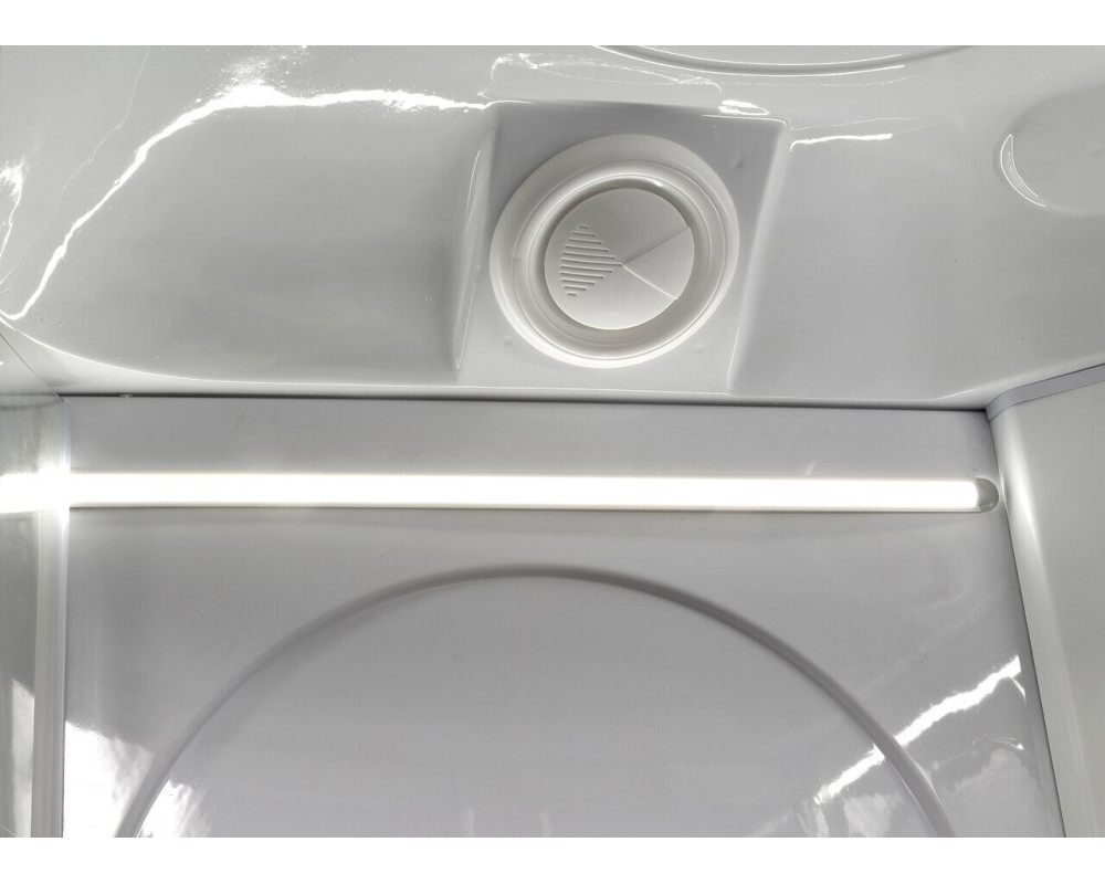 Стильная душевая кабина Deto L520L LED с гм. сочетает в себе высокую функциональность, практичность и надежность. Для изготовления применяют безопасное закаленное стекло толщиной 4 мм, надежно фиксируемое алюминиевым профилем. Цвет профиля хром. В комплекте душевой гарнитур, тропический (верхний) душ, гидромассажные форсунки.