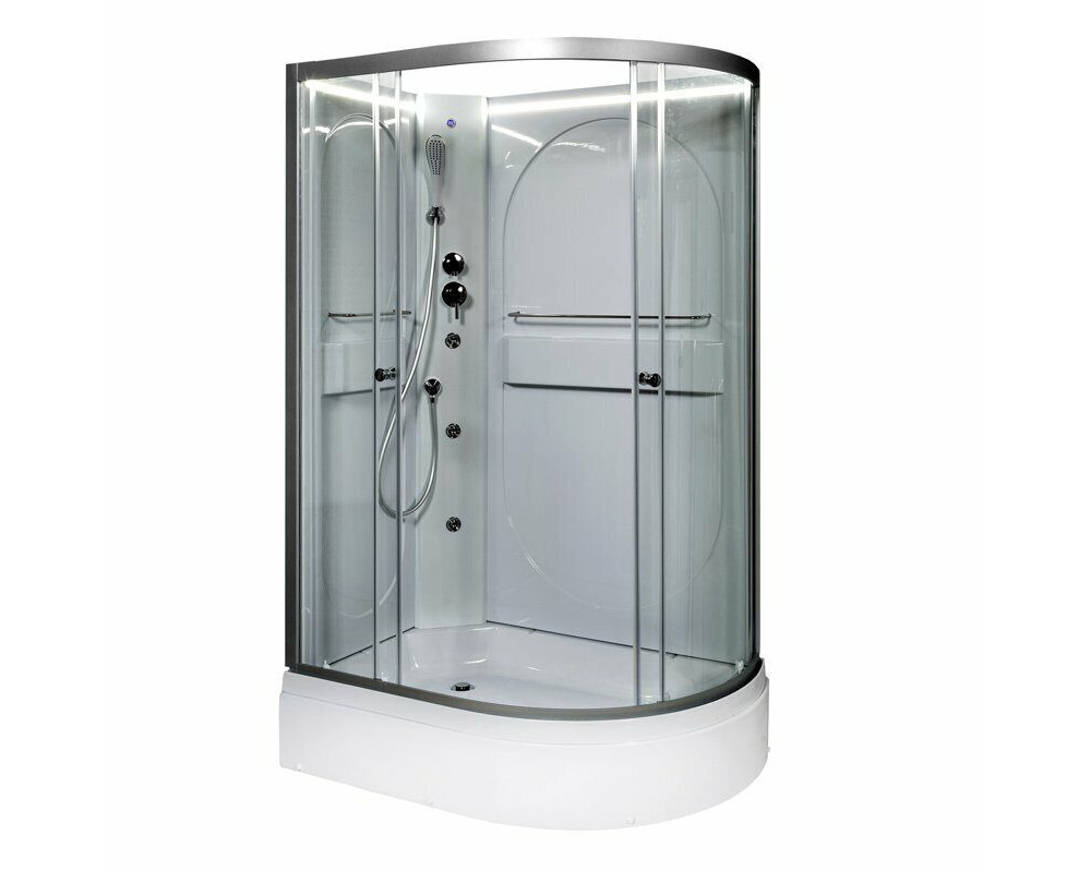 Стильная душевая кабина Deto L520L N LED с гидромассажем сочетает в себе высокую функциональность, практичность и надежность. Для изготовления применяют безопасное закаленное стекло толщиной 4 мм, надежно фиксируемое алюминиевым профилем. Цвет профиля хром. В комплекте смеситель, душевой гарнитур, полочки.