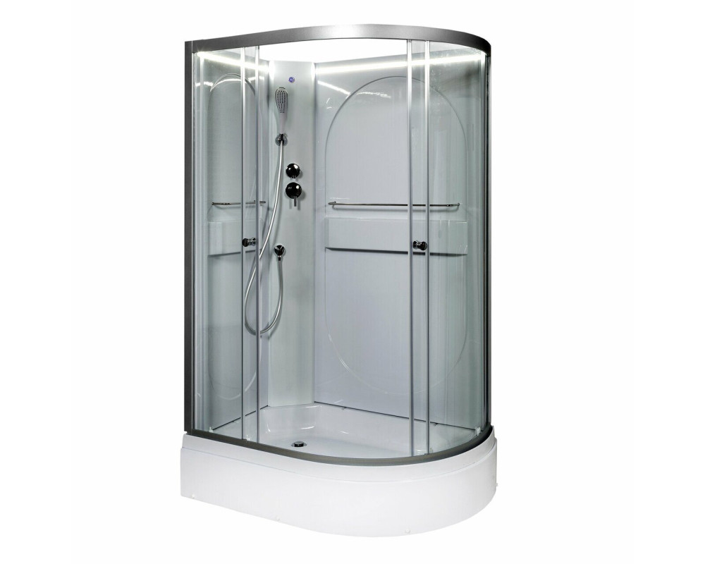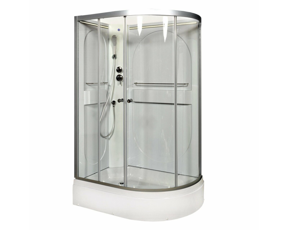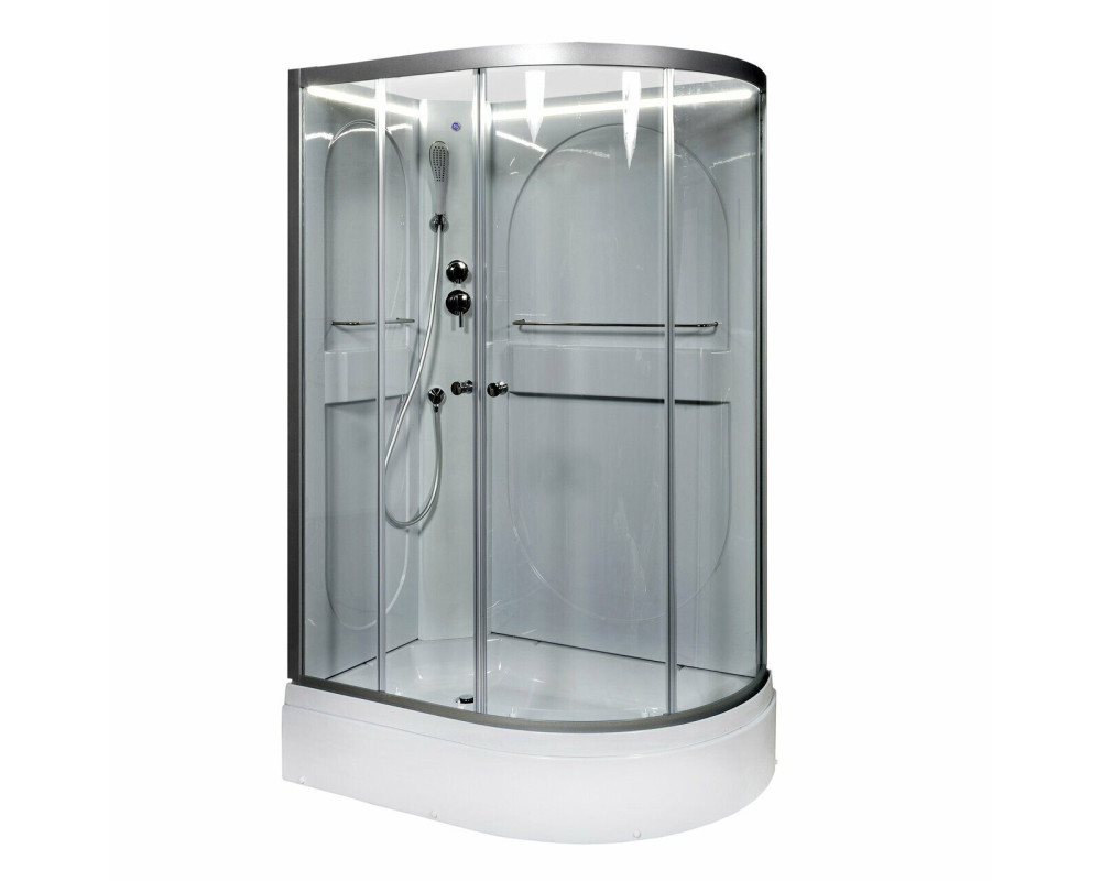 Стильная душевая кабина Deto L520L N LED сочетает в себе высокую функциональность, практичность и надежность. Для изготовления применяют безопасное закаленное стекло толщиной 4 мм, надежно фиксируемое алюминиевым профилем. Цвет профиля хром. В комплекте смеситель, душевой гарнитур, полочки.