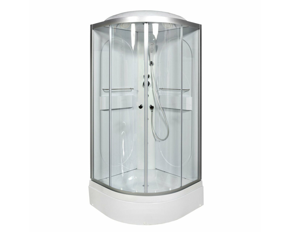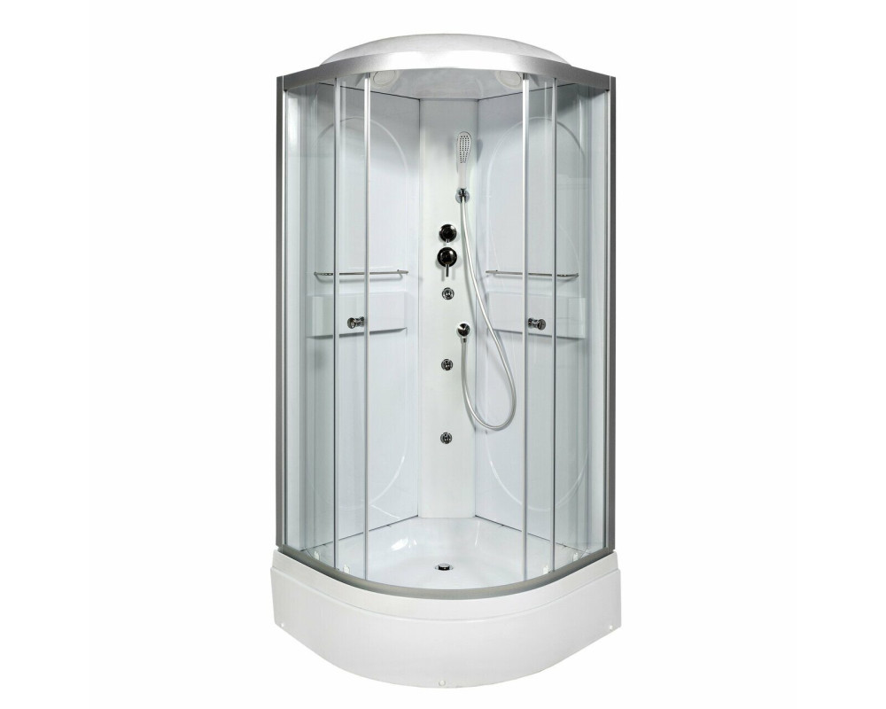 Стильная душевая кабина Deto L580 с гидромассажем сочетает в себе высокую функциональность, практичность и надежность. Для изготовления применяют безопасное закаленное стекло толщиной 4 мм, надежно фиксируемое алюминиевым профилем. Цвет профиля хром. В комплекте смеситель, душевой гарнитур, тропический (верхний) душ, полочки.