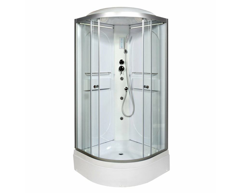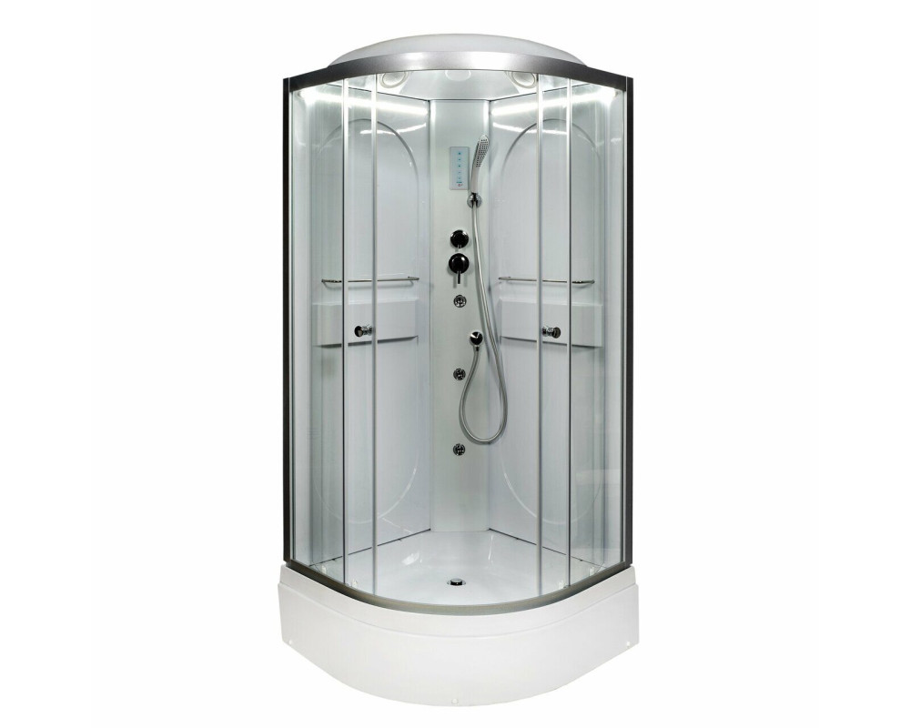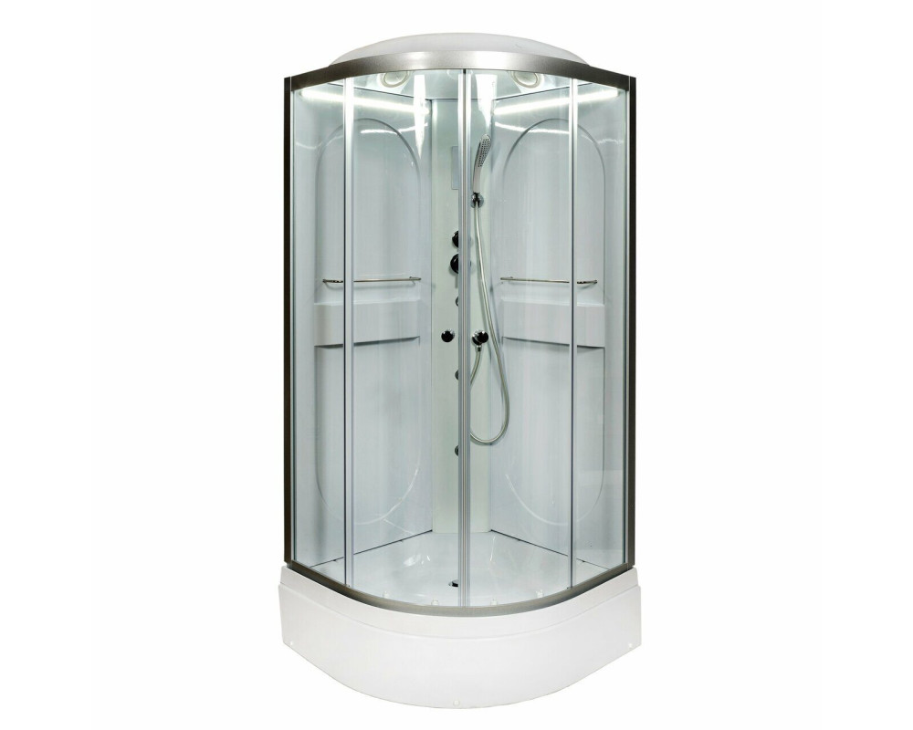 Стильная душевая кабина Deto L590 LED с гм. сочетает в себе высокую функциональность, практичность и надежность. Для изготовления применяют безопасное закаленное стекло толщиной 4 мм, надежно фиксируемое алюминиевым профилем. Цвет профиля хром. В комплекте смеситель, душевой гарнитур, тропический (верхний) душ, радио, полочки.
