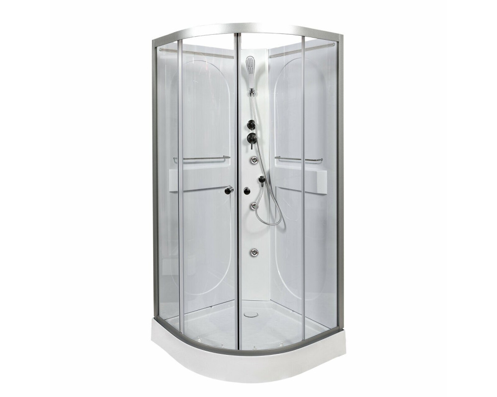 Стильная душевая кабина Deto L601 N с гидромассажем сочетает в себе высокую функциональность, практичность и надежность. Для изготовления применяют безопасное закаленное стекло толщиной 4 мм, надежно фиксируемое алюминиевым профилем. Цвет профиля хром. В комплекте смеситель, душевой гарнитур, полочки.