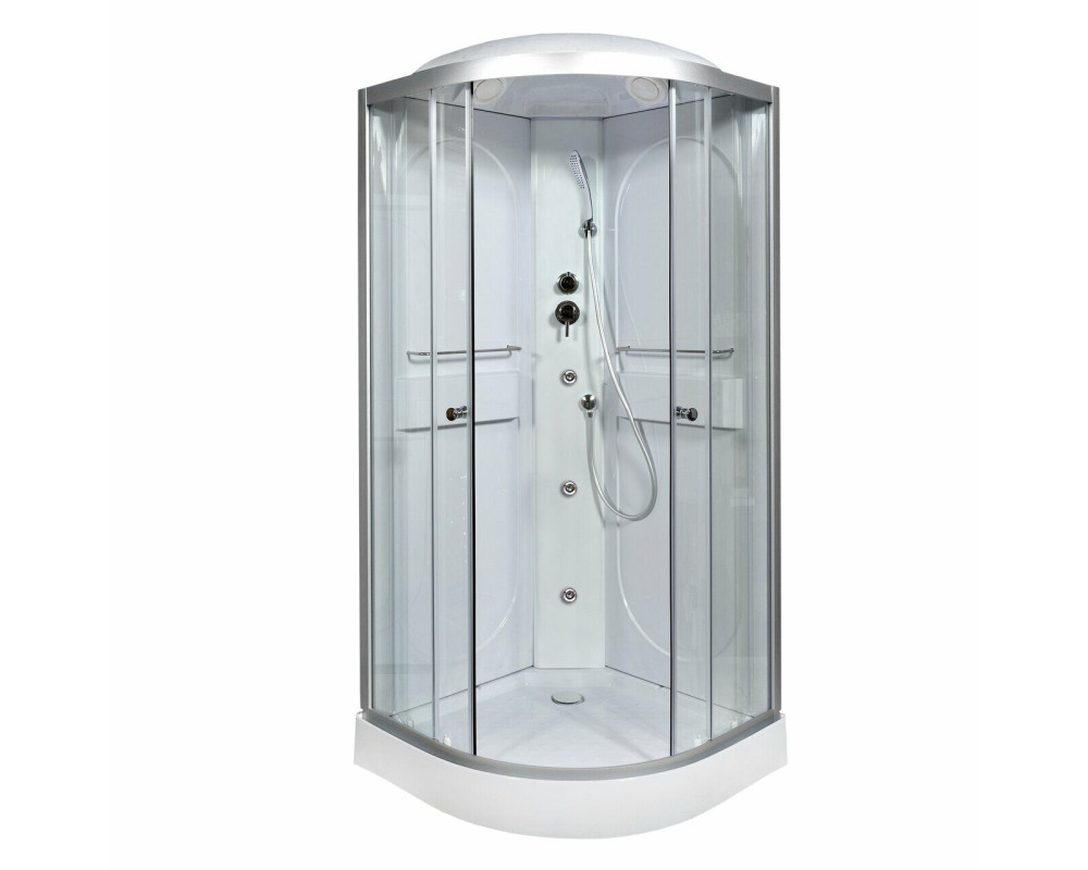 Стильная душевая кабина Deto L601 с гидромассажем сочетает в себе высокую функциональность, практичность и надежность. Для изготовления применяют безопасное закаленное стекло толщиной 4 мм, надежно фиксируемое алюминиевым профилем. Цвет профиля хром. В комплекте смеситель, душевой гарнитур, тропический (верхний) душ, полочки.