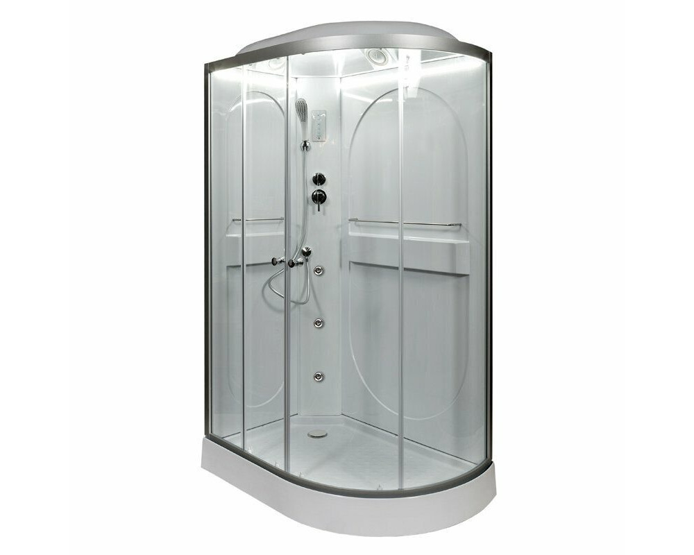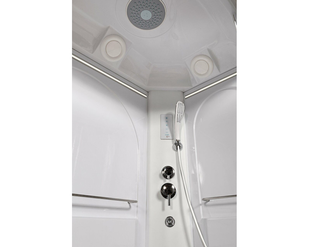 Стильная душевая кабина Deto L602L LED с гм. сочетает в себе высокую функциональность, практичность и надежность. Для изготовления применяют безопасное закаленное стекло толщиной 4 мм, надежно фиксируемое алюминиевым профилем. Цвет профиля хром. В комплекте смеситель, душевой гарнитур, тропический (верхний) душ, радио, полочки.