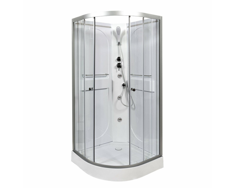 Стильная душевая кабина Deto L608 N с гидромассажем сочетает в себе высокую функциональность, практичность и надежность. Для изготовления применяют безопасное закаленное стекло толщиной 4 мм, надежно фиксируемое алюминиевым профилем. Цвет профиля хром. В комплекте смеситель, душевой гарнитур, полочки.