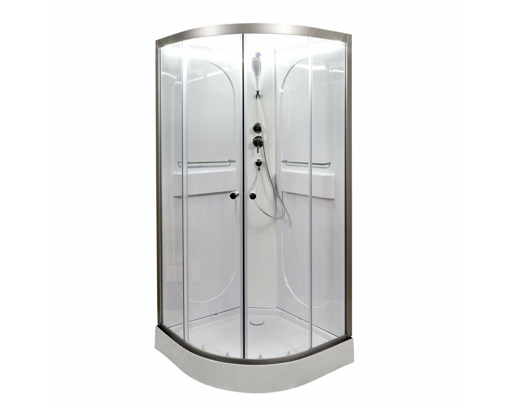 Стильная душевая кабина Deto L609 N LED сочетает в себе высокую функциональность, практичность и надежность. Для изготовления применяют безопасное закаленное стекло толщиной 4 мм, надежно фиксируемое алюминиевым профилем. Цвет профиля хром. В комплекте смеситель, душевой гарнитур, полочки.