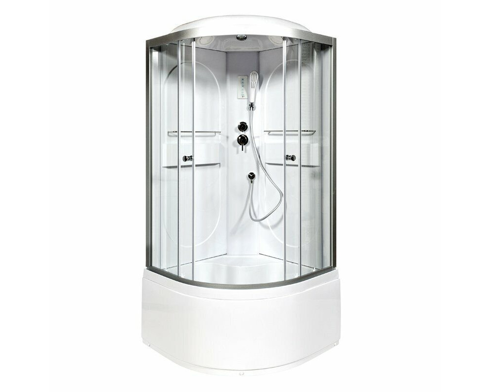 Стильная душевая кабина Deto L680 с электрикой сочетает в себе высокую функциональность, практичность и надежность. Для изготовления применяют безопасное закаленное стекло толщиной 4 мм, надежно фиксируемое алюминиевым профилем. Цвет профиля хром. В комплекте смеситель, душевой гарнитур, тропический (верхний) душ, встроенное сидение, радио, полочки.