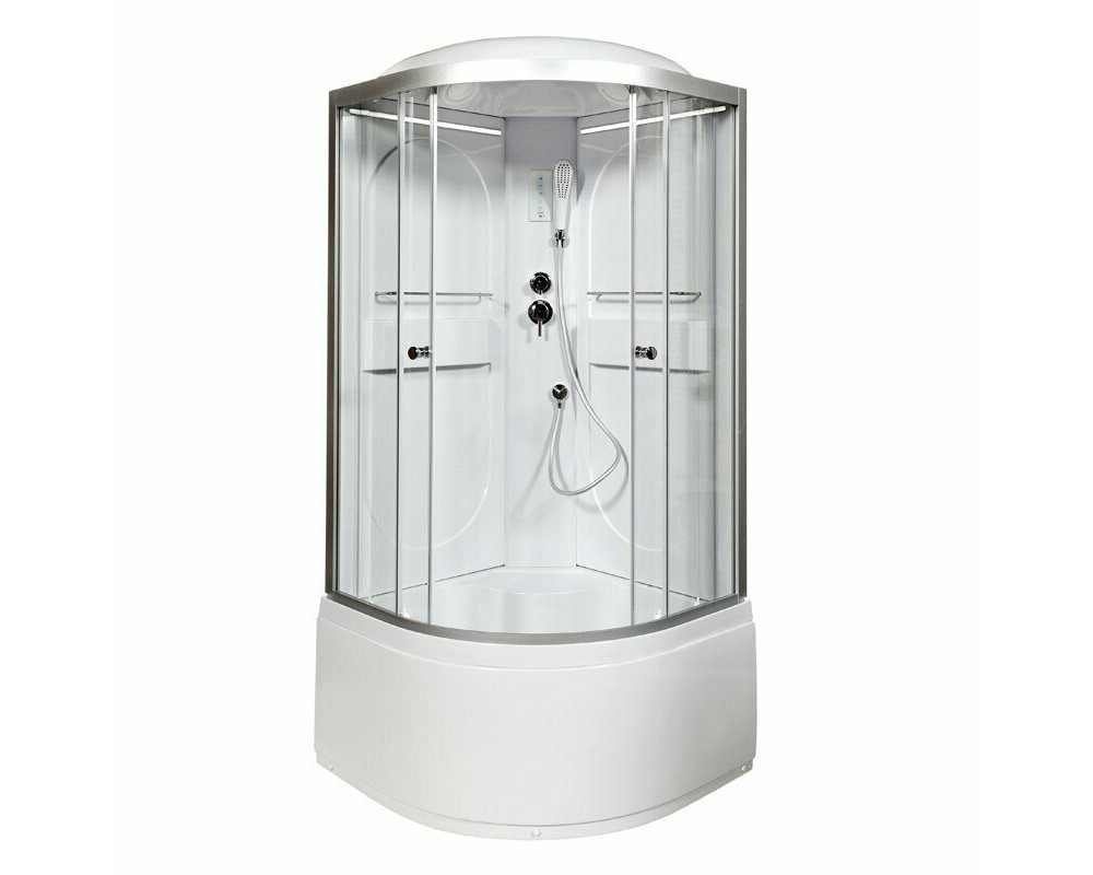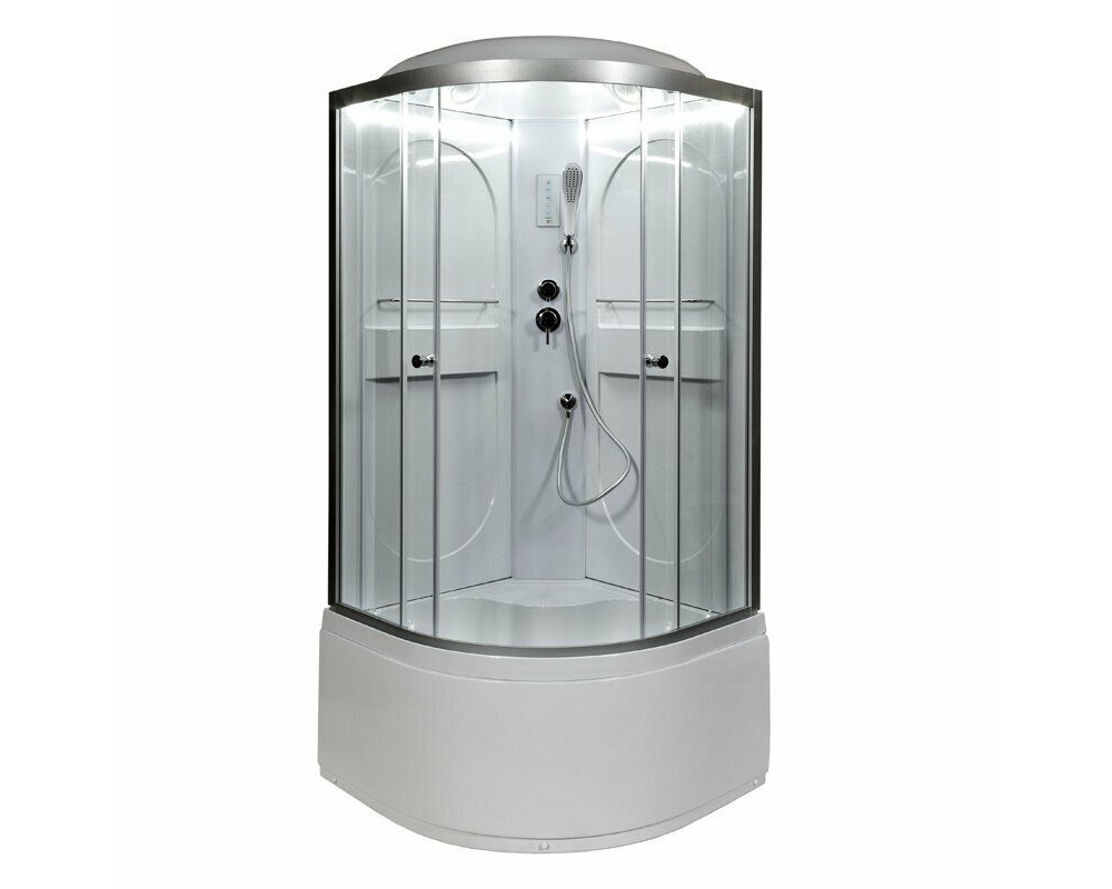 Стильная душевая кабина Deto L690 LED сочетает в себе высокую функциональность, практичность и надежность. Для изготовления применяют безопасное закаленное стекло толщиной 4 мм, надежно фиксируемое алюминиевым профилем. Цвет профиля хром. В комплекте смеситель, душевой гарнитур, тропический (верхний) душ, встроенное сидение, радио, полочки.