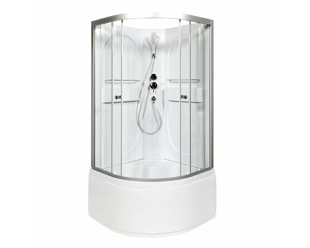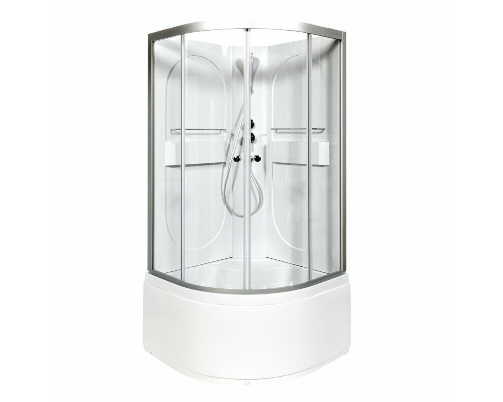 Стильная душевая кабина Deto L690 N (без крыши) сочетает в себе высокую функциональность, практичность и надежность. Для изготовления применяют безопасное закаленное стекло толщиной 4 мм, надежно фиксируемое алюминиевым профилем. Цвет профиля хром. В комплекте смеситель, душевой гарнитур, встроенное сидение, полочки.