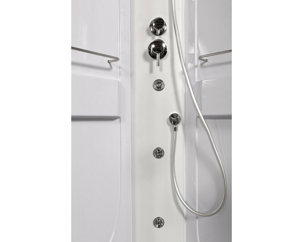 Стильная душевая кабина Deto L690 N LED с гидромассажем сочетает в себе высокую функциональность, практичность и надежность. Для изготовления применяют безопасное закаленное стекло толщиной 4 мм, надежно фиксируемое алюминиевым профилем. Цвет профиля хром. В комплекте смеситель, душевой гарнитур, встроенное сидение, полочки.