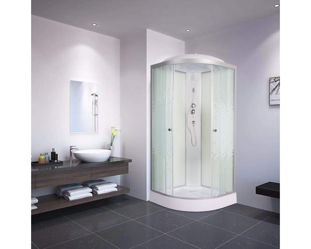 Стильная душевая кабина Deto L909 сочетает в себе высокую функциональность, практичность и надежность. Для изготовления применяют безопасное закаленное стекло толщиной 4 мм, надежно фиксируемое алюминиевым профилем. Цвет профиля хром. В комплекте тропический (верхний) душ, вентиляция.