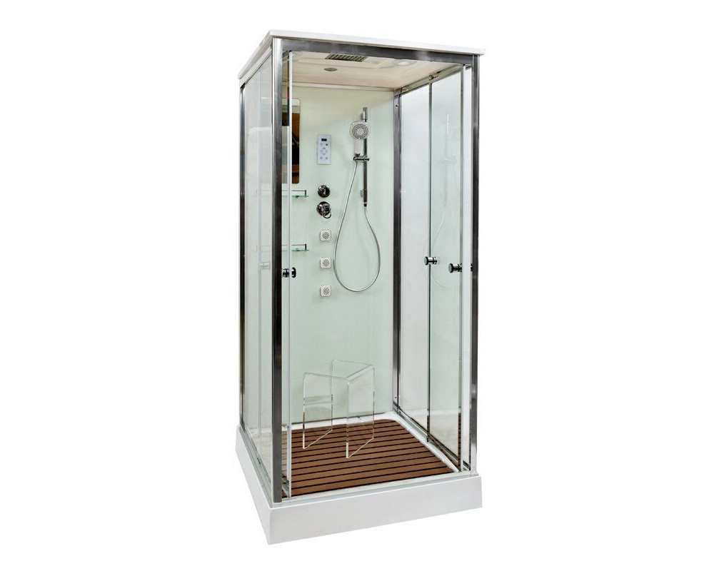 Стильная душевая кабина Deto V1015 сочетает в себе высокую функциональность, практичность и надежность. Для изготовления применяют безопасное закаленное стекло толщиной 6 мм, надежно фиксируемое алюминиевым профилем. Цвет профиля хром. В комплекте зеркало, сенсорный пульт управления, душевой гарнитур, смеситель, тропический (верхний) душ, переключатель режимов, вентиляция, полочки, гидромассажные форсунки, тропический (верхний) душ, вентиляция, радио.