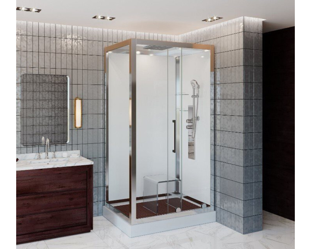 Стильная душевая кабина Deto Z120 Kerava сочетает в себе высокую функциональность, практичность и надежность. Для изготовления применяют безопасное закаленное стекло толщиной 6 мм, надежно фиксируемое алюминиевым профилем. Цвет профиля хром. В комплекте душевой гарнитур, тропический (верхний) душ.