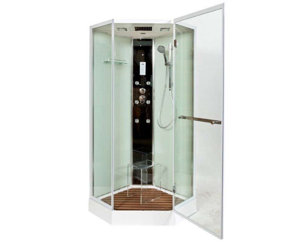 Стильная душевая кабина Deto Z900 Mistic Vogue сочетает в себе высокую функциональность, практичность и надежность. Для изготовления применяют безопасное закаленное стекло толщиной 6 мм, надежно фиксируемое алюминиевым профилем. Цвет профиля хром. В комплекте душевой гарнитур, тропический (верхний) душ, гидромассажные форсунки.