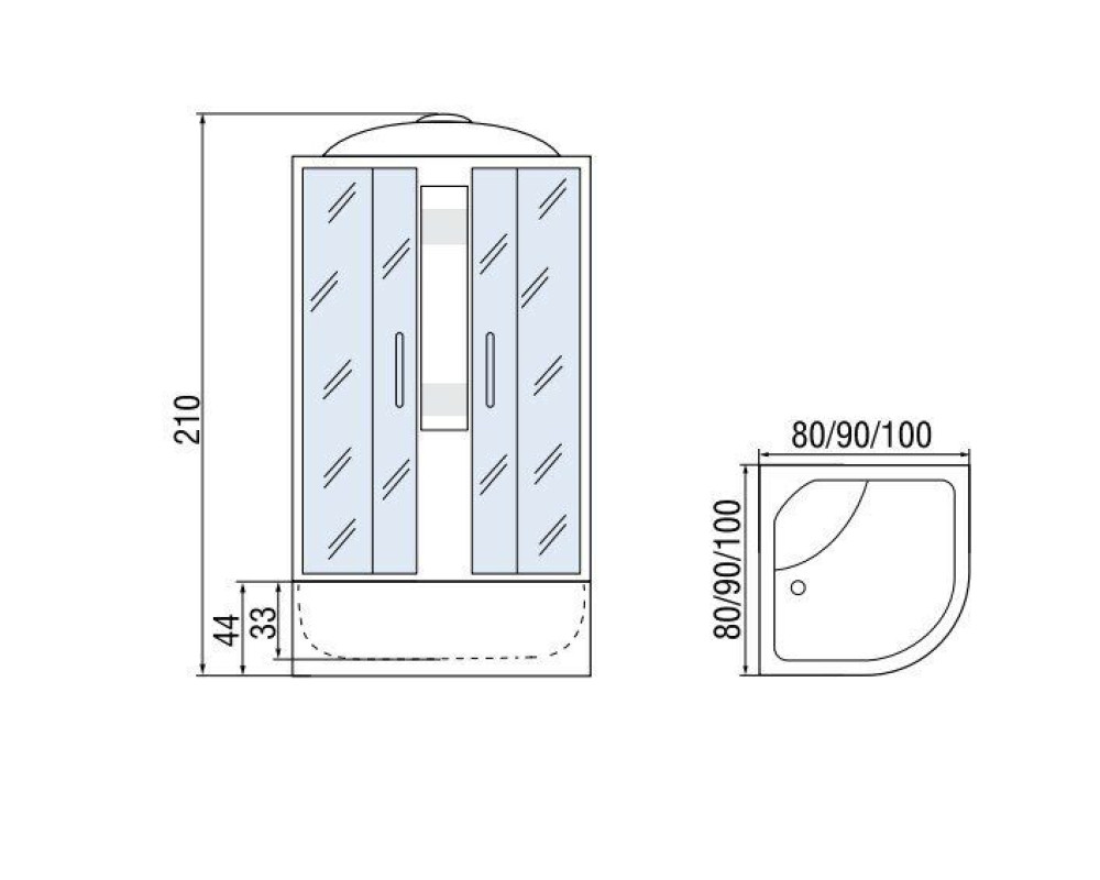 Стильная душевая кабина МОНОМАХ 100/44 С МЗ сочетает в себе высокую функциональность, практичность и надежность. Для изготовления применяют безопасное закаленное стекло толщиной 4 мм, надежно фиксируемое алюминиевым профилем. Цвет профиля хром. В комплекте встроенное сидение, сифон, передний съемный экран, душевой гарнитур, полочка, тропический (верхний) душ.