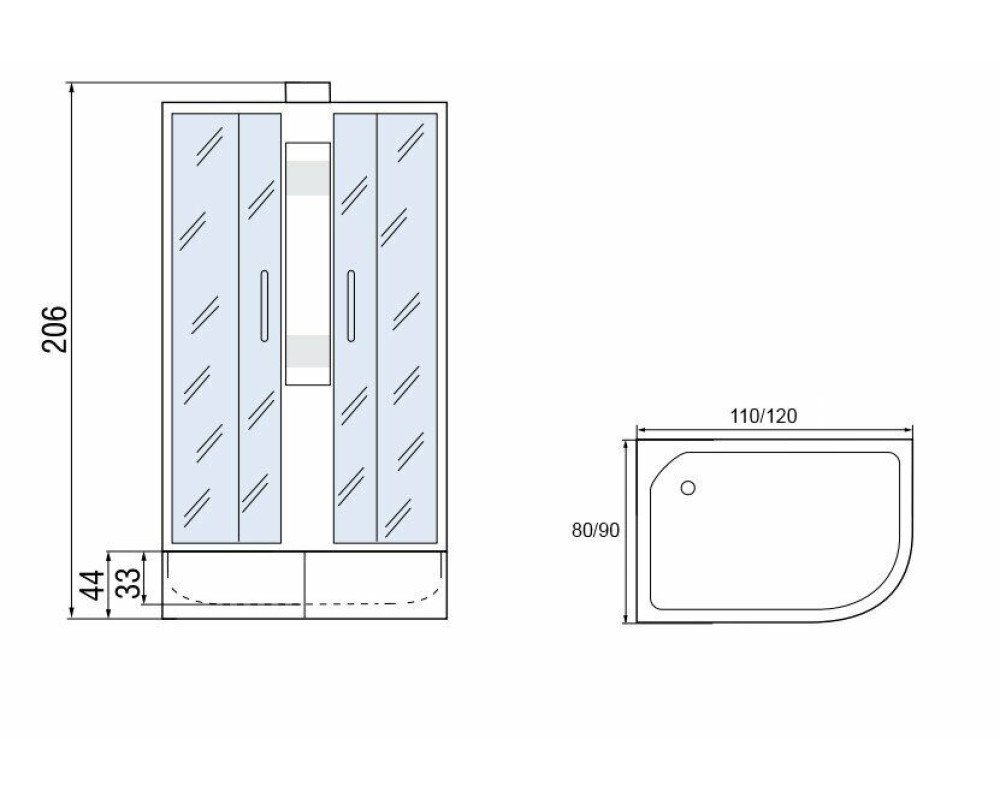 Стильная душевая кабина МОНОМАХ 120/80/44 МЗ R Б/К сочетает в себе высокую функциональность, практичность и надежность. Для изготовления применяют безопасное закаленное стекло толщиной 4 мм, надежно фиксируемое алюминиевым профилем. Цвет профиля хром. В комплекте встроенное сидение, сифон, передний съемный экран, душевой гарнитур, полочка.