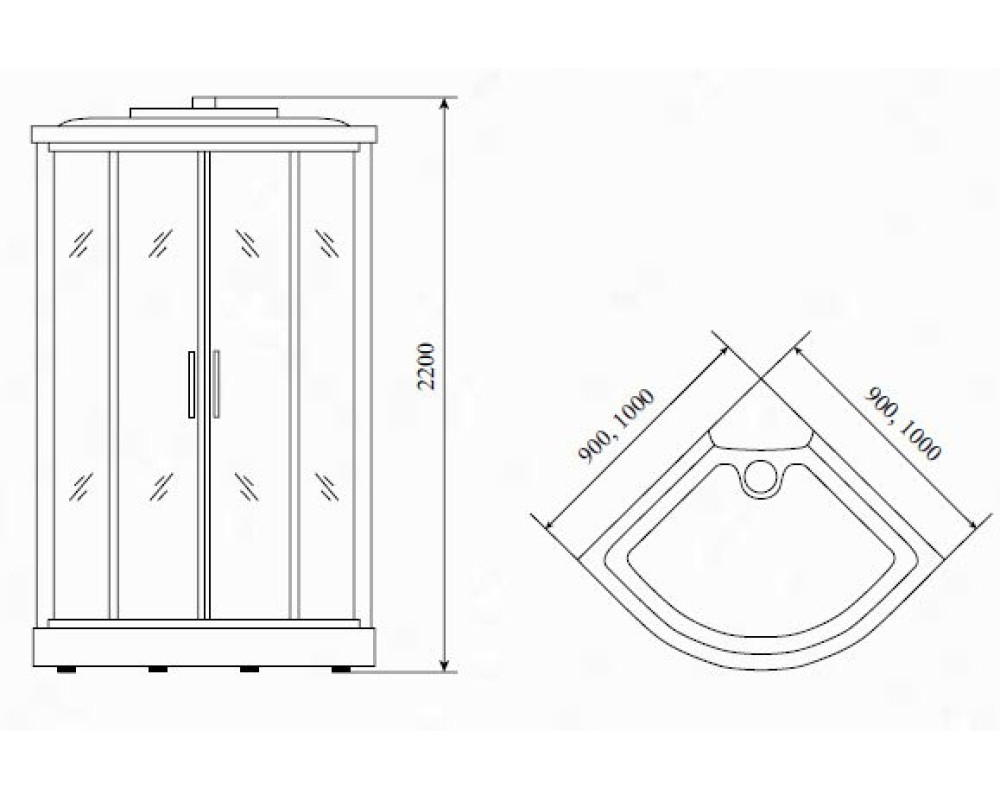 Тип кабины - Полукруглая душевая кабина для пристенного монтажа