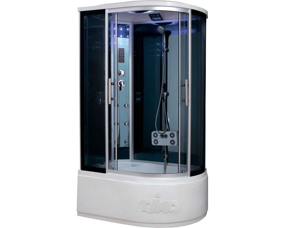 Тип кабины - Полукруглая гидромассажная душевая кабина для пристенного монтажа Тип стекла - Закалённое травмобезопасное стекло 5мм Тип поддона - Акриловый поддон армированный стекловолокном на регулируемых ножках