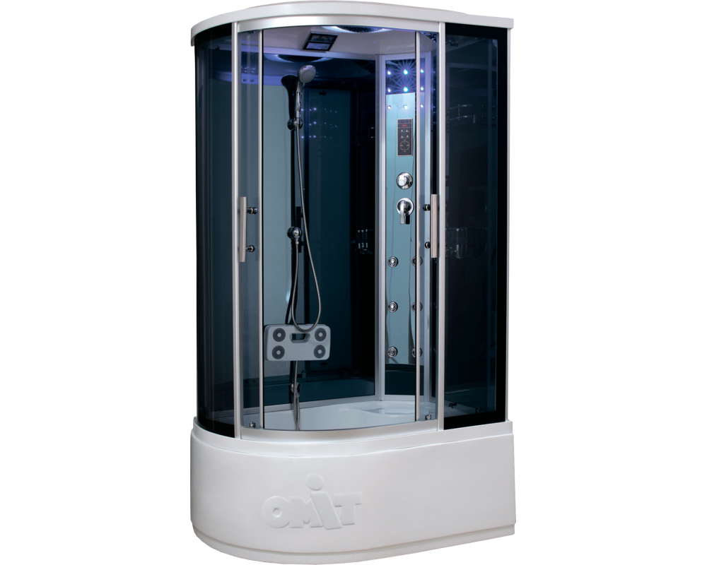Тип кабины - Полукруглая гидромассажная душевая кабина для пристенного монтажа Тип стекла - Закалённое травмобезопасное стекло 5мм Тип поддона - Акриловый поддон армированный стекловолокном на регулируемых ножках