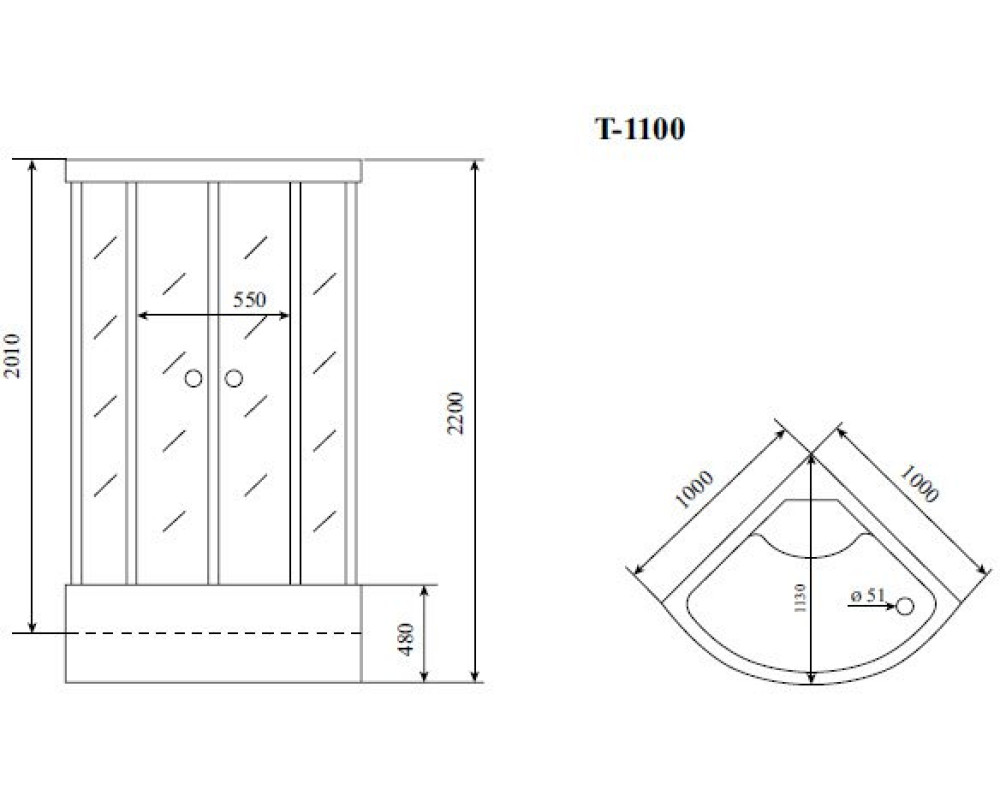 Тип кабины - Четверть круга душевая кабина для пристенного монтажа