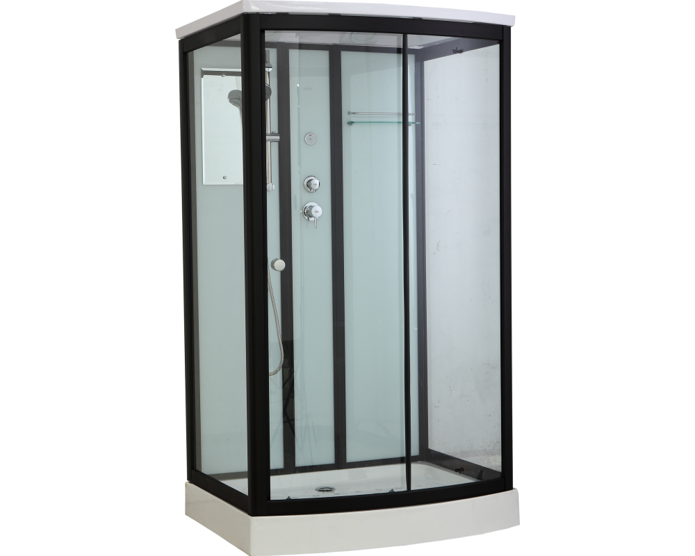 Тип кабины - Прямоугольная душевая кабина для пристенного монтажа Тип стекла - Закалённое травмобезопасное стекло 5мм Тип поддона - Акриловый поддон армированный стекловолокном на регулируемых ножках