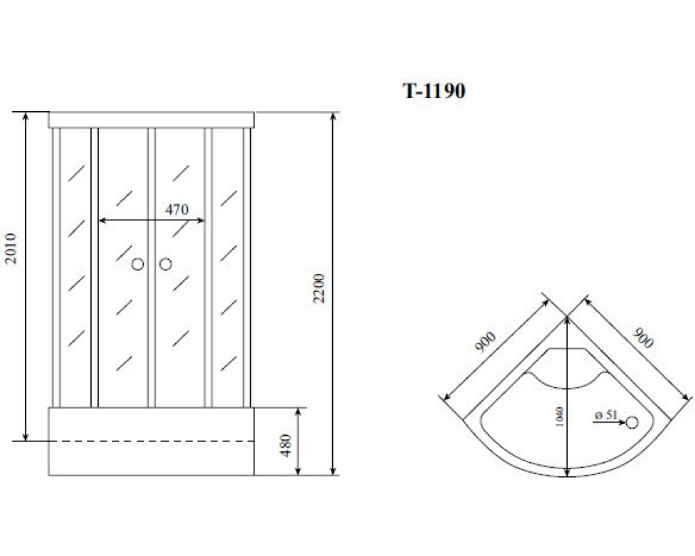 Тип кабины - Четверть круга душевая кабина для пристенного монтажа