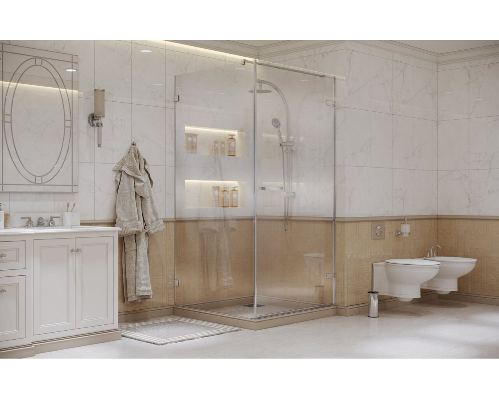 Душевой уголок Ambassador Abner 10011102R превосходно впишется в современный интерьер ванной комнаты. Конструкция устанавливается в угол помещения и экономит пространство санузла. Прозрачные стекла создадут ощущение простора в небольшой ванной комнате. Поддон не входит в стандартную комплектацию изделия, приобретается отдельно. Размер и форма поддона должны соответствовать габаритам ограждения.