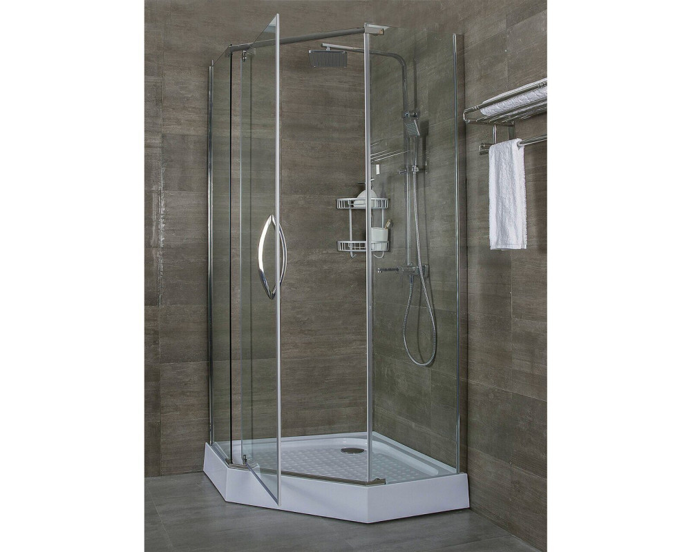 Стильный душевой уголок Alex Baitler AB215-90 900x900x2000 сочетает в себе высокую функциональность, практичность и надежность. Для изготовления применяют безопасное закаленное стекло толщиной 8 мм, надежно фиксируемое профилем из нержавеющей стали, цвет профиля хром. Распашная дверь закрывается аккуратно и плавно. Магнитные уплотнители препятствуют проникновению воды за пределы душевого пространства, сохраняя пол и стены сухими. Поддон не входит в стандартную комплектацию изделия, приобретается отдельно. Размер и форма поддона должны соответствовать габаритам ограждения.
