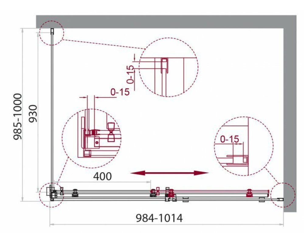 Габариты с регулировками, мм: (984-1014)x(985-1000)x1950