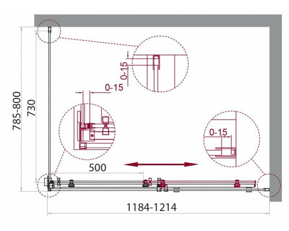 Габариты с регулировками, мм: (1184-1214)x(785-800)x1950