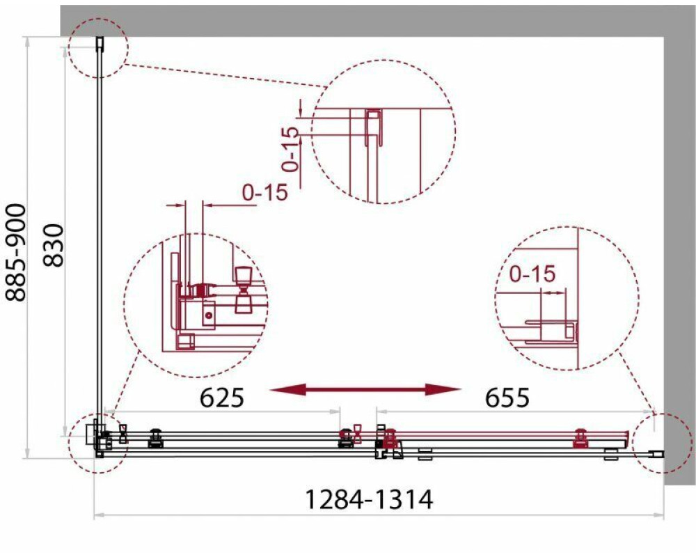 Габариты с регулировками, мм: (1284-1314)x(885-900)x1950