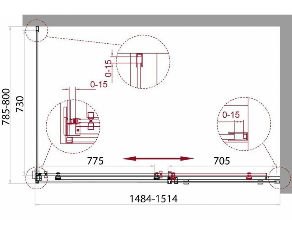 Габариты с регулировками, мм: (1484x1514)x(785-800)x1950