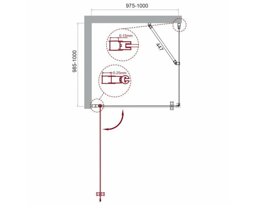 Габариты с регулировками, мм: (975-1000)x(985-1000)x1950