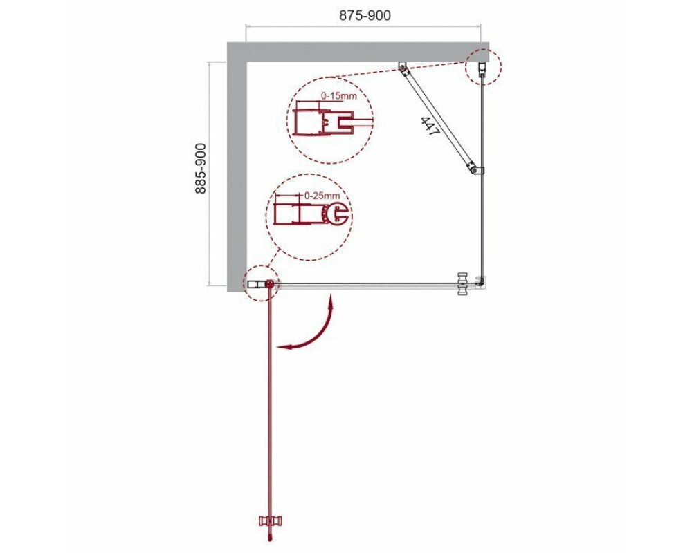 Габариты с регулировками, мм: (875-900)x(885-900)x1950