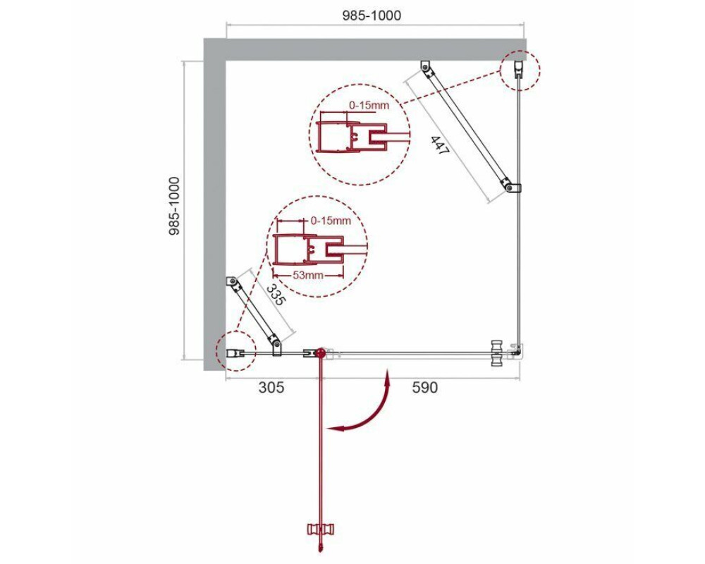 Габариты с регулировками, мм: (985-1000)x(985-1000)x1950
