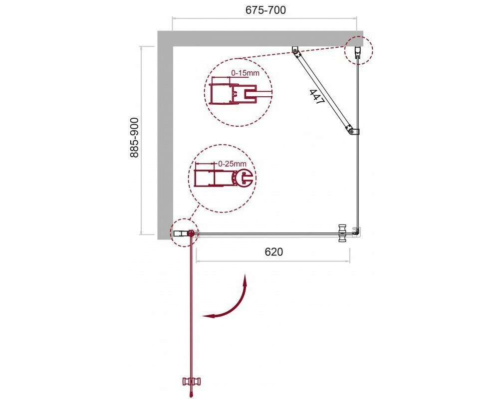 Габариты с регулировками, мм: (675-700)x(885-900)x1950