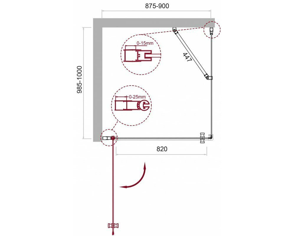 Габариты с регулировками, мм: (875-900)x(985-1000)x1950